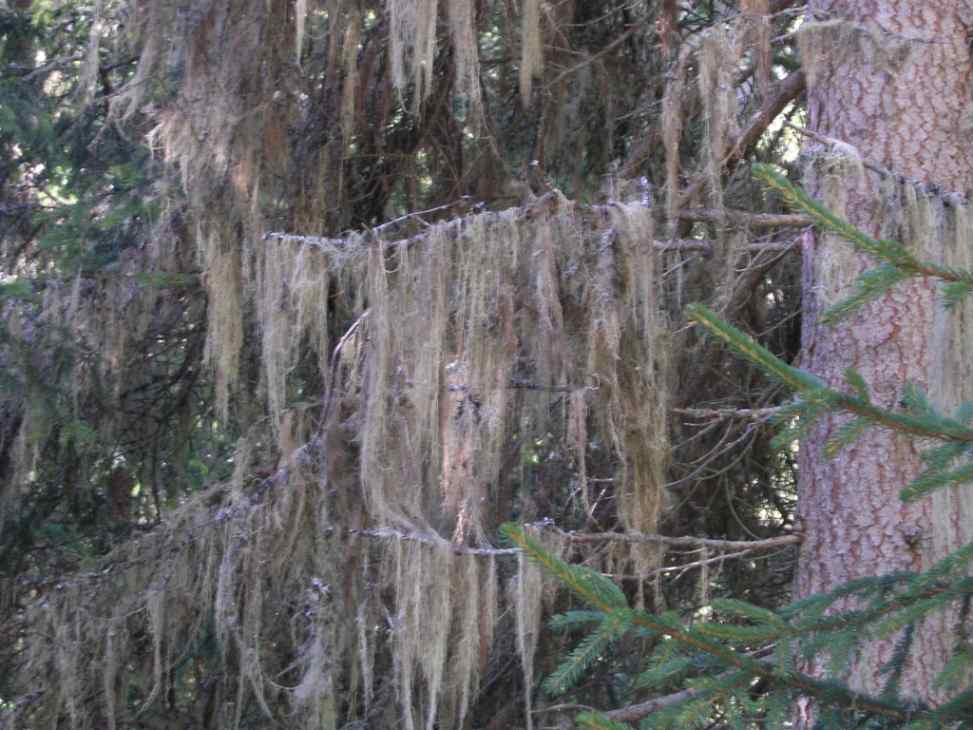 Greisenhaar an einer Fichte, soll tatsächlich ein Anzeichen für saubere Luft sein