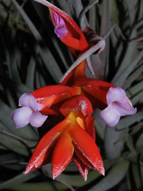 Eine andere rotblühende Art ist Tillandsia funckiana. Beide Arten sind nicht so stark beschuppt wie zum Beispiel T. ionantha und brauchen es daher luftfeuchter.