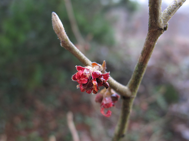 .Ist dafür allerdings noch zu früh, jedenfalls bei mir. Die Winterblüher haben eine ungewöhnlich lange Phase mit Dauerfrost und geschlossener Schneedecke (bis zu 25 cm, das ist für hiesige Verhältnisse gigantisch viel) hinter sich. Erst am Mittwoch hat hier (leichtes) Tauwetter mit Regen eingesetzt; letzte Schneereste liegen aber immer noch. Offene Blüten fehlen bisher, so reaktionsschnell sind Gehölze ganz offensichtlich nicht