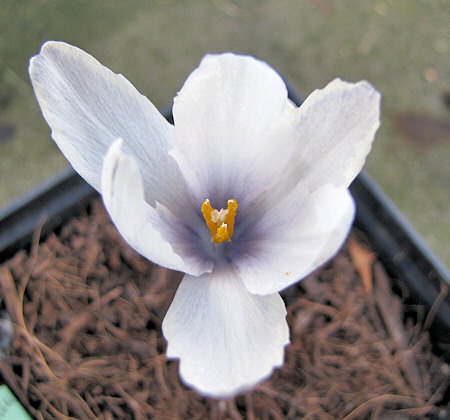 Nachdem ich letztes Jahr begonnen habe, Crocen in Töpfen zu kultivieren. Die erste Blüte: michelsonii