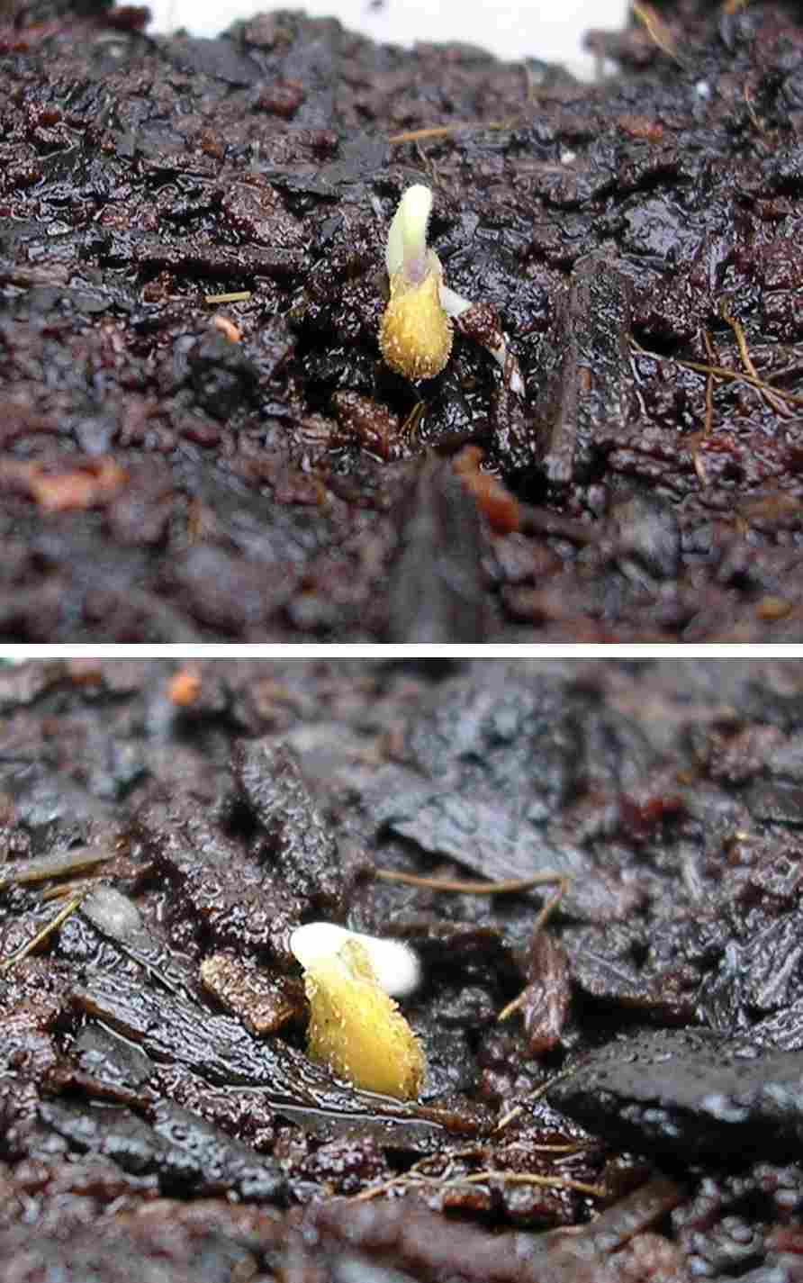 Hallo,ich habe auch vorher die Suche benutzt, aber leider den Thread nicht gefunden?Ich habe zwischenzeitlich die Erde etwas mehr angedrückt, zwei der nächsten sich zeigenden Keimlinge sehen aus wie auf dem Bild. Die Erde ist wie schon gesagt etwas zu grob, aber die Aufnahme aus ca. 5cm Entfernung täuscht auch ein wenig.