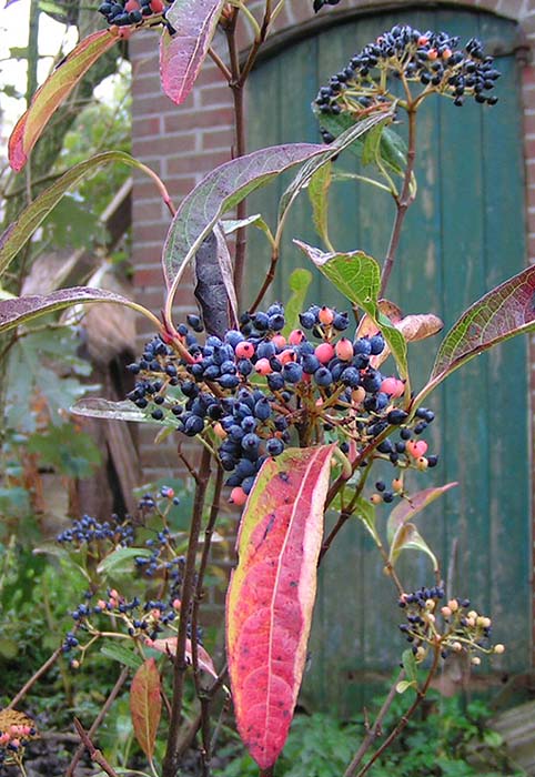 Die Baumschule im Nachbardorf hat immer wieder Überaschungen in petto. Letzte Woche:Viburnum nudum. Früchte erst creme, dann rosa, dann stahlblau. Aber wie hier zu sehen dieser Farbverlauf auch zum gleichen Zeitpunkt. Dazu noch die Herbstfärbung! Für Leute mit kleinem Garten, denen ein Sorbus mit rosa oder cremefarbenen Beeren noch zu groß wäre, ist dies doch die Alternative.