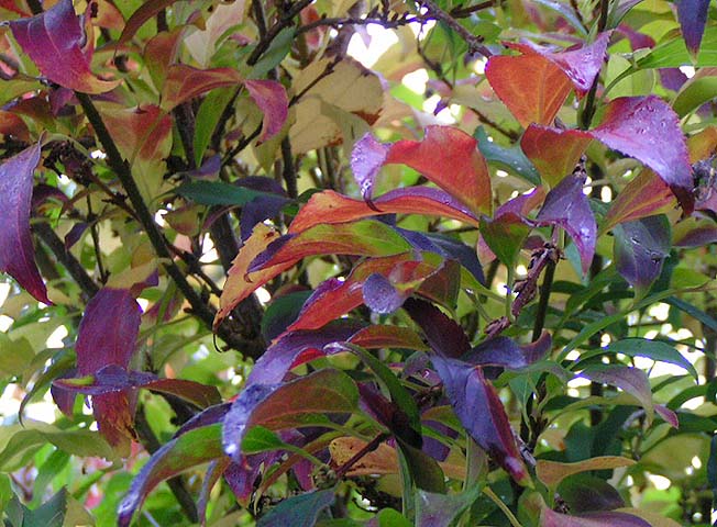 abgesehen davon, dass die hecke in der vollen sonne steht, hat in der ganzen gegend keine forsythie eine herbstfärbung; schätze mal, das liegt am klima !?übrigens haben die 2 callipcarpa dichotoma 'Early Amethyst', die ich heuer im frühjahr gesetzt habe, einige allerwinzigste lilarosa perlchen. die muss mensch einfach liebhaben, so zart sind sie