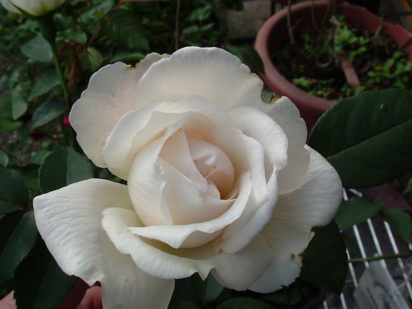 Dorothea, im nächsten Jahr müssen wir die unbedingt okuieren.Paß schön auf sie aufDie weiße Teerose ist eine Schönheit, ein ganz besonderer Schatz, und wirklich einzigartig im wahrsten Sinne des Wortes. Ich werde versuchen, sie zu vermehren und habe ihr den Arbeitsnamen "Weiße Schöne" gegeben und hoffe, daß ich es irgendwann einmal herausbekomme, wie sie wirklich heißt. Zum Herbst hin wurde sie ganz zart rosa überhaucht....Dorothea
