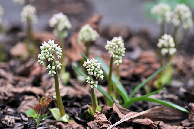 Mukdenia soll sie jetzt also heißen. bei mir blüht sie noch als Acerophyllum rossi.Die Epimedien kommen langssam aber sicher...Hier schiesst Mukdenia rossii aus der Erde.