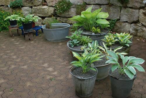 ...meine Hosta im Topf (Halbschatten, keine Mittagsonne) giesse ich "nur" einmal pro Woche. Die gedeihen prächtig. Eine schöne Hosta, graulaubig und/oder weiß panaschiert, dazu ein schönes Carex und eine rot-silbrige Heuchera sieht in der Zinkwanne bestimmt gut aus.