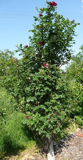 in Bahlingen am Kaiserstuhl gibt es die Fa. Rosen und Wein, und die haben 2000 einen klasse Rosenweg als Schaugarten angelegt, ein schöner Kletterer oder größerer Strauch neben dem anderen, alle an Säulen/Pfählen. War letztes Jahr schon dort und hatte berichtet, heute hatte ich wenig Zeit, ich war nur gerade in der Nähe und wollte doch mal sehen, wie sich der Winter so ausgewirkt hat und was schon so blüht.Los geht's:
