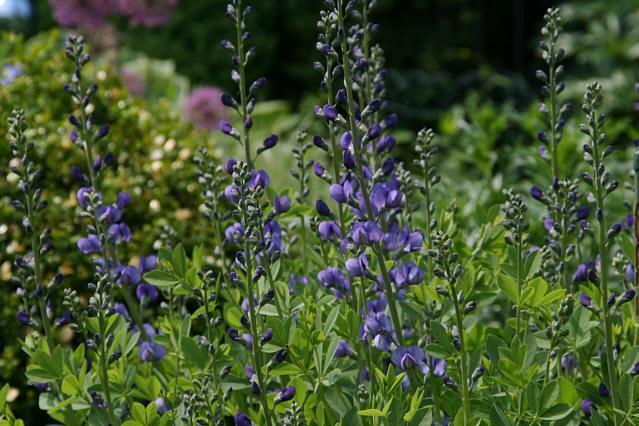 Meine Baptisia sind groß und kräftig und üppig. Sie stehen auf einem mit Bauschutt durchsetzten Sand in voller Sonne. Sie bekommen nie auch nur einen Tropfen Gießwasser. Allerdings profitieren sie vom Blaukorn, was ich den Frühlingsblühern gönne.