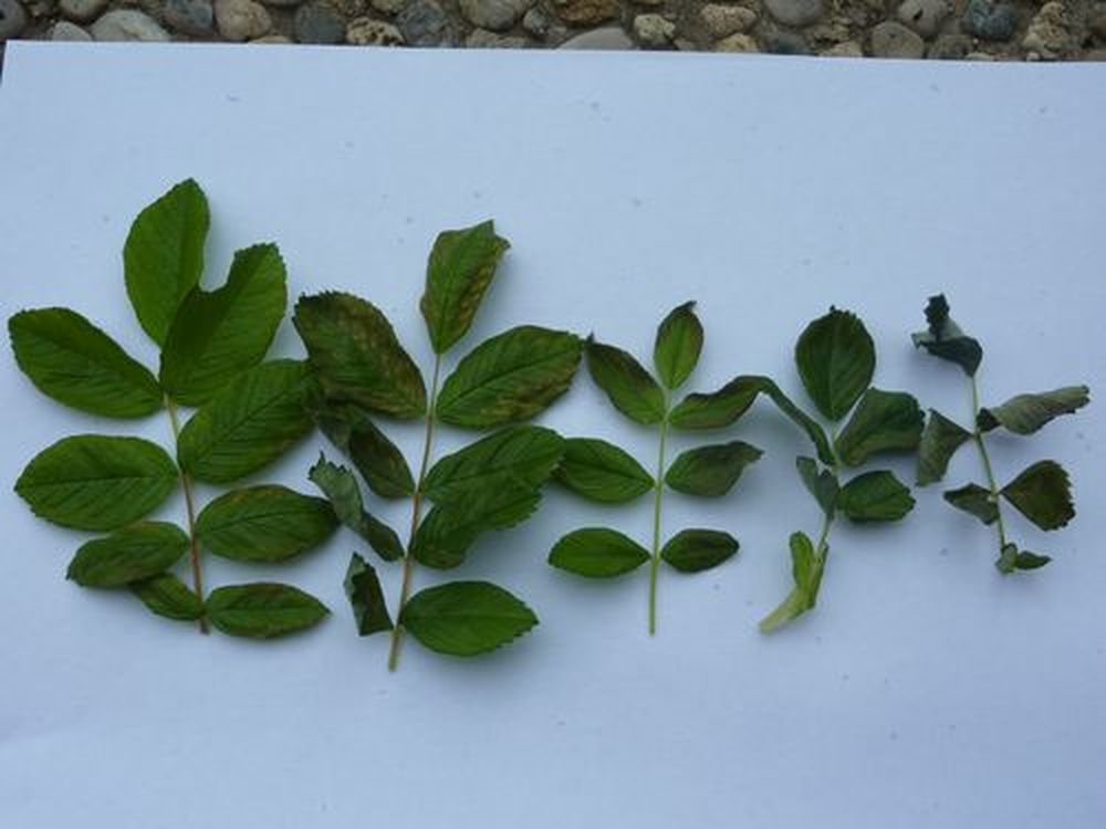 sollen ja Spritzen nicht gut ab können.Anbei ein paar Fotos mit Blättern in unterschiedlichen Befallsstadien und am Ende Hansa nach meiner großen OP. Ich wollte doch so gerne wenigstens eine Blüte (gleich