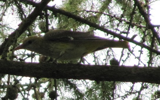 So schnell können Wünsche in Erfüllung bringen: Plötzlich flötete es ganz laut direkt vor dem Fenster. Es waren mindestens vier Vögel, vielleicht auch mehr, so richtig gut sehen kann man ja nur die gelb gefärbten Herren. Hoch oben in der Lärche habe ich auf jeden Fall ein Jungtier erwischt.