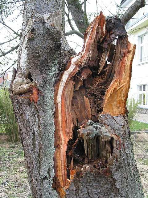 Das zweite Bild entstand nur drei Wochen später. Zufall, daß ich vorher fast den gleichen Bildausschnitt und Blickrichtung gewählt hatte.So schnell kann es gehen. Der halbe Baum lag am Boden, als wir dorthin kamen. Zum Glück sehr ordentlich auf der Wiese, nicht auf Nachbars Zaun, nicht auf dem Schuppen und auch nicht auf irgendjemandes Kopf.