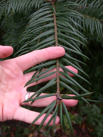 Ich bin nun endlich mal zu den Bildern gekommen und dank vieler Tips zum Einstellen der Bilder klappt es nun besser (hoffe ich).Torreya californica ist eine sehr langnadelige Konifere, die sich von den ähnlichen Cephalotaxus durch die wirklich sehr spitzen Nadeln unterscheidet. Wenn man die Gattung bestimmen will, muß man nur schwungvoll in die Zweige greifen, dann vergißt man den Unterschied nicht mehr, zumindest wenn es Torreya war ;)Im Rheinland gibt es in den Bot. Gärten einige sehr schöne richtig baumförmige Exemplare. Bei Stecklingspflanzen entwickelt sich leider meistens nur ein flacher, oft bizarr wachsender Busch ohne Mitteltrieb.LG Taxus