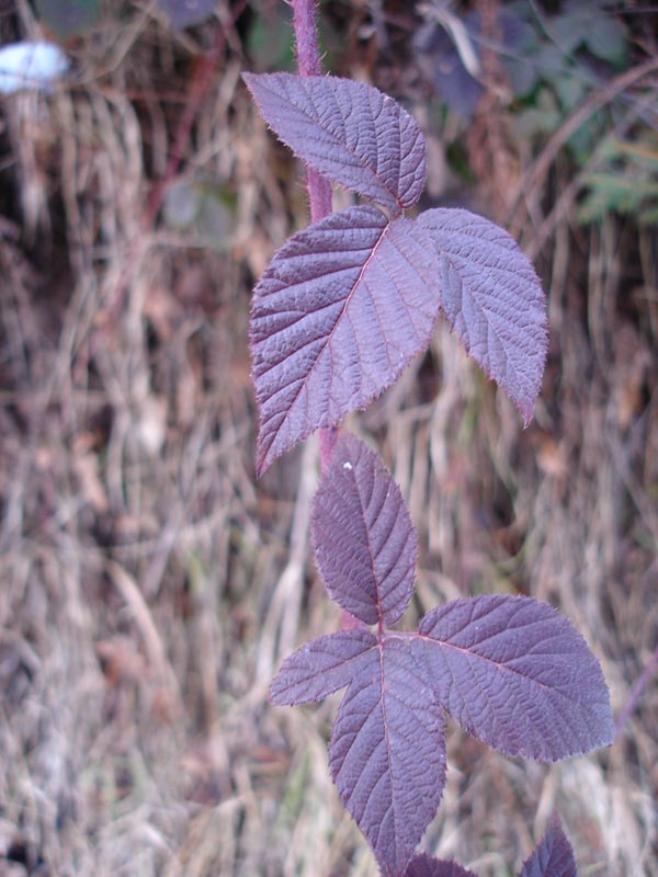 die richtige wilde brombeere ist bei uns noch grün. aber die kratzbeere (rubus caesius), die bei uns sehr häufig ist, freut mich schon seit oktober mit ihren farbspielen (und im sommer mit den früchten). lg, brigitte