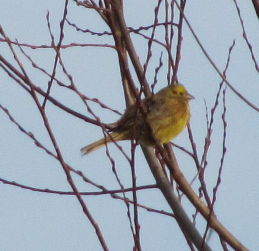 Ich denk', der Girlitz ist 'ne Goldammer .............Auf meinem Spaziergang heute waren überhaupt viele Vögel zu beobachten, z.B. Girlitze, die die Strahlen der schon tief stehenden Sonne genossen.