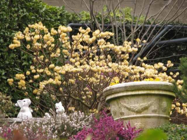 Ein paar Haeuser weiter ist auch eine hellgelbe Wolke gelandet. Kann jemand auf die Entfernung sagen, welche Edgeworthia das ist?