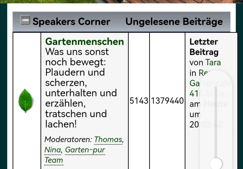 Zum Gartenjahr gehören:"Naturbeobachtungen, Wetter, Klima, Phänologie, Naturereignisse, Jahreszeiten, Himmelsbeobachtungen, kulturhistorische Hintergründe und überliefertes Wissen"Ein Beitrag zum Klima gehört also hierein. Wenn Beiträge aus inhaltlichen Gründen aufs Abstellgleis geschoben werden, hat das nicht mit der Technik des Forums zu tun, sondern mit Ideologie.