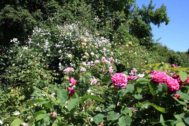 ...@Cim: Das Bild, das du beschreibst, hat mich auch dazu gebracht, Bäume zu berosen. Erreicht habe ich's aber nur an einem einzigen Baum. Dort blüht 'Madame Alfred Carrière', sehr schön; sie zu bändigen, kostet freilich jedes Jahr etliche Stunden Leiterakrobatik. Das Monster 'Kiftsgate' an einem zweiten Baum musste wg. Unzähmbarkeit bald wieder weichen, bei den übrigen Ramblern gibt's bisher das oben geschilderte Aufleitungsproblem - mittlerweile, ernüchtert, würde ich mir Baumrosenpflanzungen verkneifen.Schöne GrüßeQuerkopfedit: Materialangabe korrigiert
