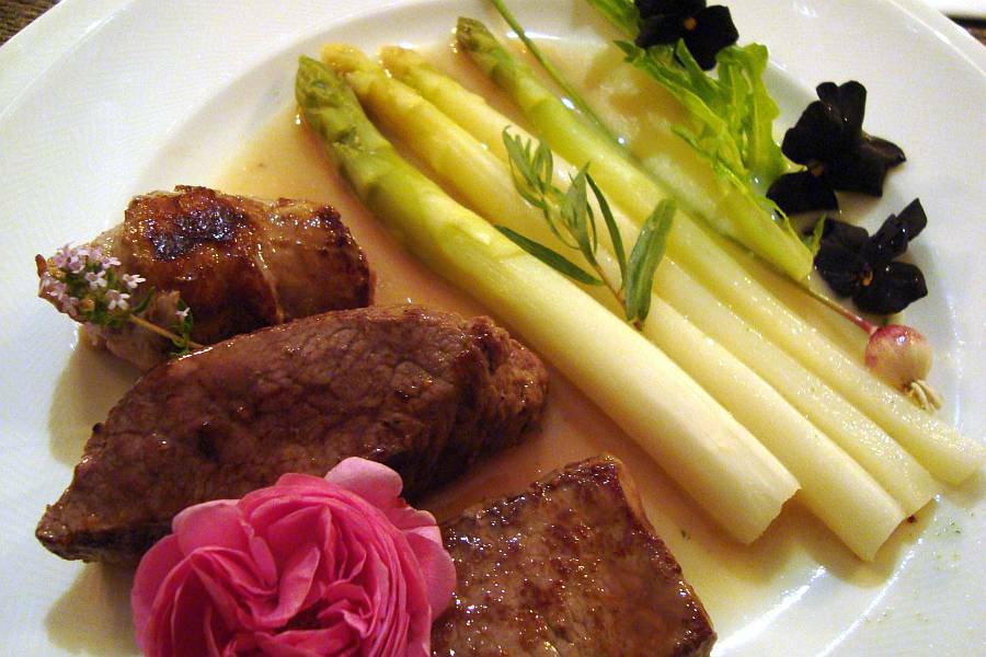 dann dreierlei fleisch mit gartenspargeln.