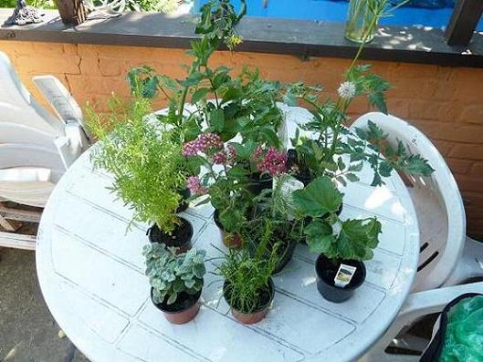 Heute war ich mit Schwester und Freundinnen zum Kräuterfest in Ummendorf. Es war ein schöner und sehr heißer Tag. Ich habe wieder schöne Pflanzen gekauft. Ist sehr verführerisch. Ein Mittelaltergarten wurde eröffnet, der schön aber noch sehr karg ist. Da freu ich mich aufs nächste Jahr!. Wir haben auch lecker gegessen (siehe Gartenküche)Anbei ein Foto meiner heutigen Ausbeute, die schon komplett im Garten steht (natürlich eingepflanzt)LG, Masche