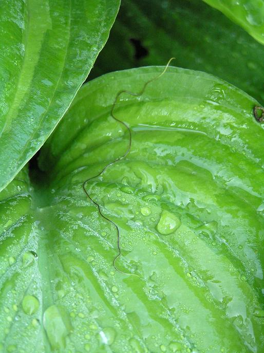 Morjen,heute morgen wand sich etwas über die nassen Hostablätter.Es sag aus wie ein Wurm, schlängelte sich durch die Tropfen.Sowas hab ich noch nie gesehen. Ca. 10 cm lang, so dick wie ein Pferdehaar, schwarz oder dunkelbraun und die zwei Enden waren beige oder weiß.Muß dazu sagen: das Hostablatt lag nicht auf der Erde, sondern schon gut 40 cm höher. Dahin mußte es erstmal gekrochen sein.