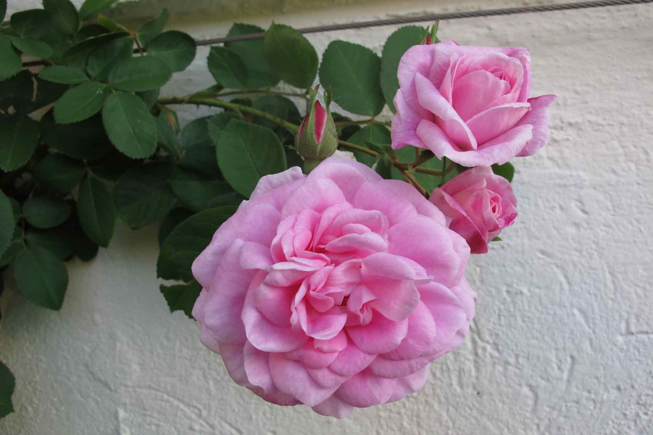 Blanchefleur ist auch wieder von 30 cm auf 1,40 cm, steht allerdings relativ geschützt. Vierge de Cléry tut sich am exponierteren Standplatz schwerer, sie knospt zur Zeit erst, aber immerhin.