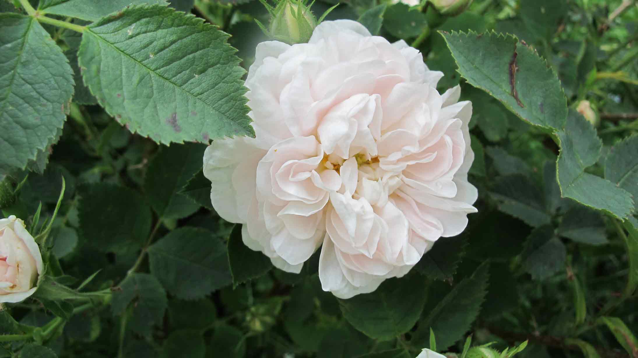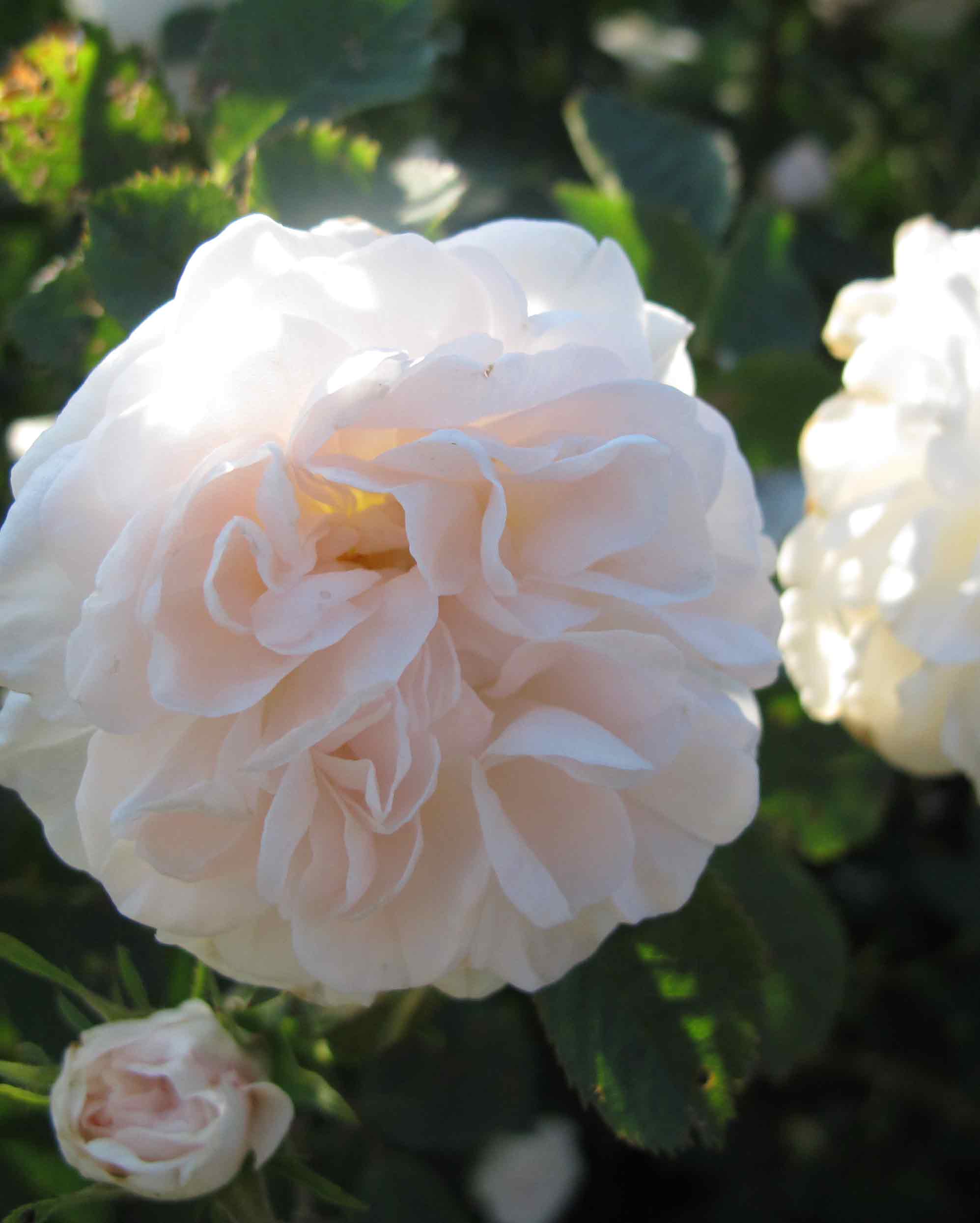 Diese Alba wurde in einer Rettungsaktion vor ein paar Jahren als riesiger, ca. 100jähriger Wurzelstock mit zwei Trieben in meinen Garten versetzt und hat es mit rasantem Wachstum gedankt. Aber selbst sie, die so lange an unser Klima gewöhnt ist, mußte im Vorjahr stark geschnitten werden, umso mehr freu ich mich jetzt über ihre duftenden Blüten. Sie wurde von kompetenter Seite in D als Princesse de Lamballe identifiziert, ganz sicher bin ich mir da allerdings nicht. Ihre Blüten erscheinen mir gefüllter und größer. Wie auch immer