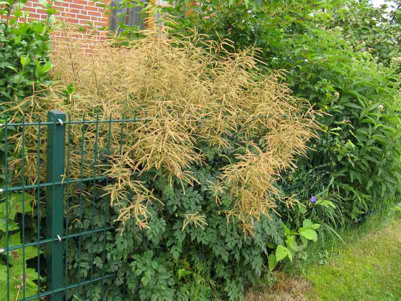 'Horatio' 170cm hoch.'Waldemar Meyer' 100cm'Netzwerk' 60cm'Misty Lace' frühblühend, 120cmAruncus astilboides 130cmAlle stehen schon länger (5-9Jahre) in meinem Garten.