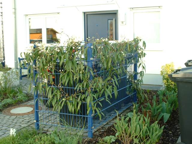 Ich habe eine Clematis armandii Snowdrift (also weiße Blüte) im Herbst 2003 gesetzt, die mir viel Freude macht! Sie hat bereits im ersten Jahr geblüht, obwohl sie da gerade 80cm hoch war. Sie hat in den 1,5 Jahren gut zugelegt, wie man auf dem Bild erkennen kann. Das Bild ist von gestern, sie ist gerade im Aufblühen.