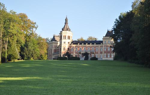 Gleichzeitig mit einem Blick nach rechts stellte sich dieses Schloss in den Sichtwinkel.Es wird als Gymnasim genutzt. Da wäre ich auch gern Schüler gewesen, traumhaft mit der Aussicht auf den See und Park.