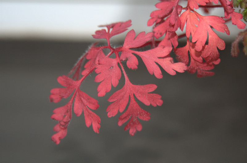 Guten Abend alle Zusammen,kann mir jemand verraten, was ich da am Fensterbrett stehen habe? Ich habe schon ein wenig gegoogelt, aber konnte mit den wenigen Informationen die ich habe nichts vergleichbares finden.Es geht um eine etwa 15-20cm hohe Pflanze mit behaarten Stängeln, gefiedertem Blatt und (sehr schöner) rötlicher Herbstfärbung. Über Früchte oder Blüten kann ich keine Aussage treffen.Das einzelne Blatt des Aaronstabes bitte ignorieren, der hat sich da reingeschmuggelt ...DankeJochen