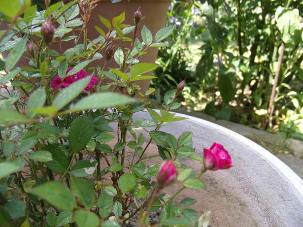 hab heuer im standard baumarkt ein sehr hübsches röschen gesehen, das ziemlich außergewöhnlich aussah. vielleicht kennt jemand ja die sorte ich konnte nichts finden und namensschild hatte das hochstämmchen auch keins. (hab sie nicht gekauft weil ich mit einem stämmchen nichts anfangen konnte.)sie hatte sehr dünne aber auch gut verzweigte überhängende triebe mit winzigen blättchen und ebenso wirklich winzigen(sogar für zwergrosenmaßstäbe) blüten (vielleicht 2cm) in intensiven hellem lila oder dunklem pink.das ganze wirkte sehr grazil und nicht nur irgendwie gestaucht oder wie eine miniatur teehybride. kennt jemand die sorte (oder etwas ähnliches?)