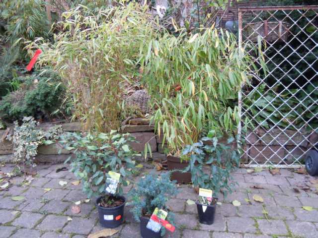 Jedes Jahr das gleiche. Es suddelt und sifft draußen, man durchstreift einsam im Nieselregen die Gartenabteilungen der Baumärkte und Gartencenter...und es hüpft, und hüpft..und hüpft in den Einkaufswagen ::)Magisch wird man von den roten "Sonderpreisen" angezogen. Und dann tut einem die Pflanze leid, man rettet sie geradezu vor dem frischaufgebauten Markt-Weihnachtsmarkt und den Christbaumkolonnen inclusive Jingle Bells.Ich weiß, über die Qualität von diesen Pflanzen kann man streiten, meist ist sie nicht so doll. Ich kaufe normalerweise auch fast ausschließlich in Spezialgärtnereien, aber diese Ramschangebote.... ;)Hier in diesem Thread dürft ihr zum Baumarkt, d-ner und Co stehen, präsentiert eure letzten Pflanzenschnäppchen des Jahres. Hier meine:Fargesia dracocephala "Rufa" (9,99), Fargesia robusta "Pingwu" (9,99) und vorne Viburnum x globosum "Jermyns Globe" (5Euro), Prunus lusitanicus (1,25 Euro) und Podocarpus lawrencei "Blue Gem" (5Euro)Und besonders spaßig ist dann die Buddelei in Nebel und Kälte. Ach hätt ichs bloß nicht gekauft