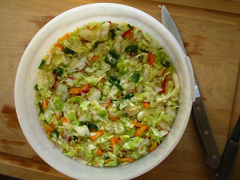 Ich glaube, es war dieses Rezept, oder ein ähnliches (habe damals allerlei recherchiert). Auf jeden Fall war es ein Kimchi-Rezept. Allerdings habe ich keinen Rettich dazu genommen.