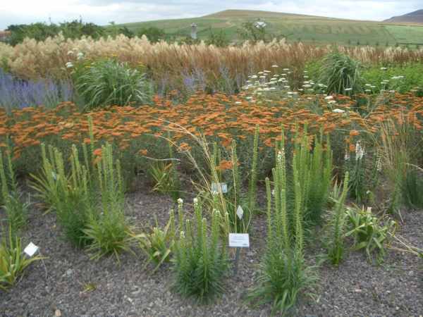 Von weitem könnte man Stipa pennata mit Nassella verwechseln. S. pennata hat aber eine völlig andere Blüte. Stipa capillata hat größere Ähnlichkeit mit Nassella.Alle 3 Gräser passen hier. Zur Achillea: Ich habe A. clypeolata seit über 4 Jahren am gleichen Standort ungeteilt und sie wächst und gedeiht.Wenn Du knalligere und zugleich trockenheitsresistentere Echinacea suchst, versuchs mal mit E. 'Mango Meadowbrite' oder E. 'Sunset' (oder E. paradoxa)Zu Calamagrostis: Warum nicht beide: Die Karl Foerster als Taktgeber in ca. 1,50-2,00 m Abstand (evtl. in 3 er Gruppe) und dazwischen die hellere und niedrigere Overdam (sehr schöne weiße Zeichnung)