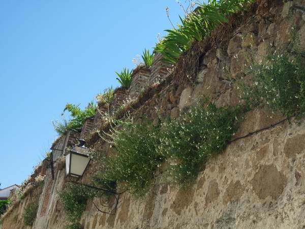 Zu dem Mauerwerk ist mir gleich Centranthus ruber eingefallen, weil der in England oft auf alten Mauern wuchert. Oder kleine Iris, hab ich in Spanien auf Mauerkronen gesehen, auch recht hübsch.