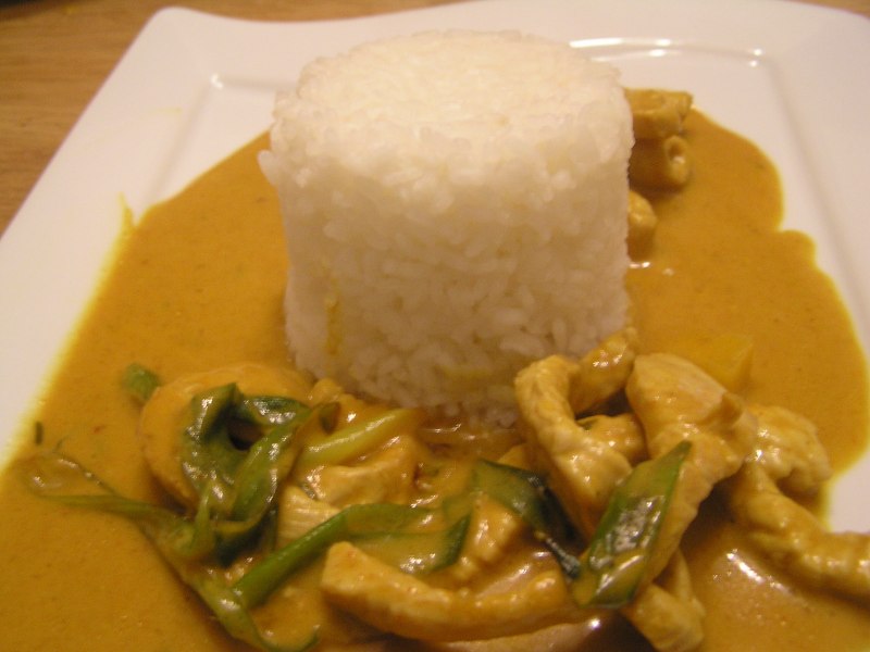bei uns gabs ein curry aus putenstreifen, frühlingszwiebeln und ananas in einer kokos-mangsoße.dazu natürlich reis :P