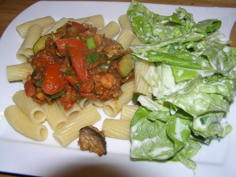 um der kälte zu trotzen gabs heute sommeressen ;D ;) nudeln mit hackfleisch, tomaten und zucchini. dazu salätleedit...rechtschreibschwäche ::) ;)