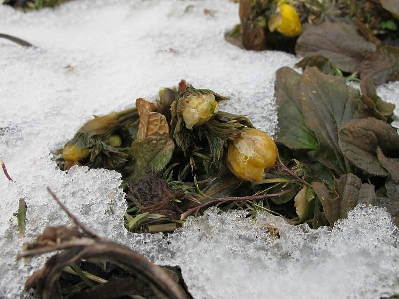 Meine früheste Helleborus Hybride hat dank sorgfältiger Abdeckung trotz Vollblüte an hohen Stängeln anscheinend überlebt. Ansonsten weitgehend Totalschaden bei den Helis, die ja alle schon weit in Blüte oder Knospe waren.Die Schneeglöckchen und Märzenbecher sind offenbar weniger empfindlich, aber auch bei ihnen gibt es Opfer.