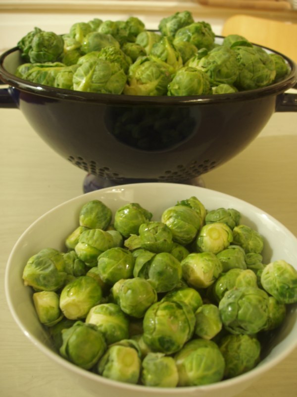 heute hat gg im kampf mit dem frost bei tagsüber -8° C um unseren rosenkohl gerungen, bevor es zu spät ist - ich durfte ihn eben noch gefrostet von den stöcken schneiden. herausgekommen ist eine ordentliche portion von normaler größe und ein schälchen knapp sauerkirschgroßer röschen... die spitzen mit den miniröschen gabs gerade als dampfgemüse.
