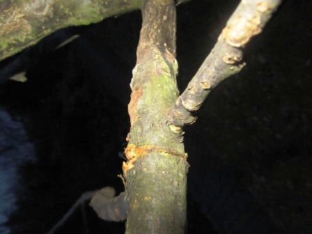 Sicherheitshalber kannst du allen Fruchtbehang, der auf diesen Ast im Gewicht drücken würde, für dieses Jahr ja rausnehmen.