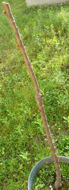 nach den Wurzeln kann ich im Moment nicht kucken, brauche Hilfe morgen um den Kübel übers Geländer zu heben...noch ein Bild von eben von der frischen Schnittstelle, hab leider nur ne Rosenscheere, war nicht so einfach.