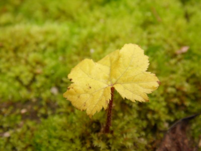 Noch ein Foto vom 14. Oktober. Ein kleiner Sämling, ca. 2cm groß mit Herbstfärbung.