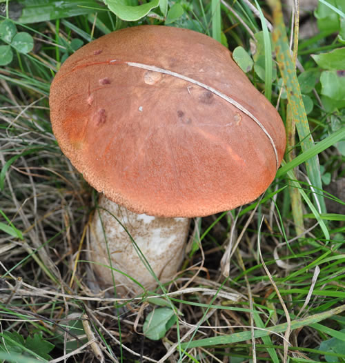 Bei einem Picknickhalt entdeckten wir diesen Pilz in der Wiese.Aber erst nachdem uns ein Auerhahn, der laut schreiend auf einen hohen Baum flog um die Ecke einer Hecke gelockt hatte.Den Auerhahn hätte ich zu gerne fotografiert. Leider war er schneller.Ein Erlebnis!