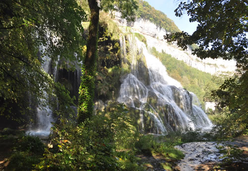 Unten im Tal.Ein paar Eindrücke der Wasserfälle Cirque de Baume.Ueberall gurgelt und schlängeln sich kleine und grössere Bäche hervor, durch Wald, Fels und Stein.
