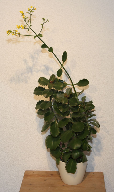 Gleiche Gattung, anderer Vertreter:Kalanchoe sexangularisGanz typisch für viele Kalanchoe: Sie verlassen mit dem Blütenstand die gewohnte Wuchsform und gehen in die Höhe.