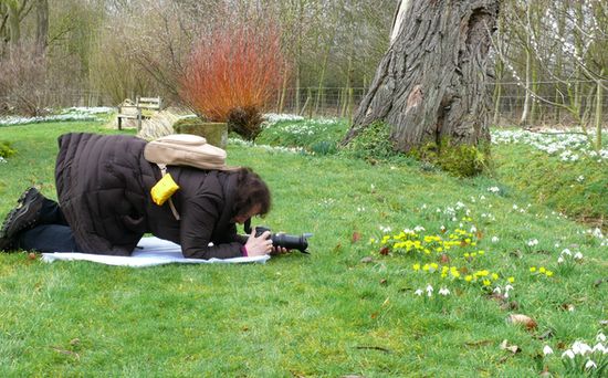 Naja, das wohl imposanteste Foto dieser Art ist leider von 2011. Hier war die Fotografin häufiges Fotomotiv, zumal sie stets wohl vorbereitet ihr Regencape misbrauchte, um sich nicht durch braune Flecke an den Knien zu outen: denn diese Flecke sind Erkennungsmerkmal im Februar: beim anbetenden Niederknien quasi unvermeidbare Folge galanthophilen Schwelgens.Gibt es ein Foto davon?ich habe selten so viele Fotografen auf einmal und fast auf dem Boden liegend gesehen.