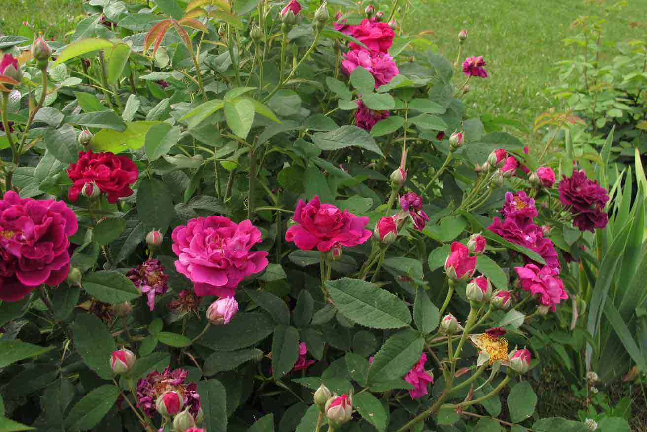 Gallicas gibt es ja unendlich viele und so verschiedene.Meine Älteste in meinem jungen Garten ist die Complicata. Die ist sehr schön wie ich finde und superwinterhart. Meine steht in Zone 5 mitten auf einer Wiese im absoluten Winterwindchill und stand auch letztes Jahr da wie eine Eins. Jetzt nach 4 Jahren hat sie ca. 1,20 Höhe und Breite (ohne Schnitt) und ich freue mich schon auf die Blütenpracht. Letztes Jahr war auch schon toll, aber da war sie nur halb so groß. Sie ist nach der Blüte noch richtig explodiert. Ich bin ein Freund offener Blüten und sie hat eine absolut tolle Fernwirkung. Allerdings gilt sie nicht als typische Gallica. Ich habe auch noch die Souvenir de Malmedy von Scarman. Sie ist genauso alt aber deutlich kleiner und auch weniger frosthart. Letztes Jahr hat sie im Laufe des Sommers noch einige Triebe eingebüßt, die nachträglich runtertrockneten. Aber Blüten hat sie sehr schöne. Alle anderen sind jünger und da warte ich noch auf genauere Erfahrungen. Sehr schön fand ich letztes Jahr auch meine Splendens (super Fernwirkung, schönes Herbstlaub, schöne rote Wintertriebe, hübsche Kreiselförmige Hagebutten) aber sie wird wohl ein Monster werden. Violacea ist ein Traum, soooo schöne Blüten und sie verbrennen auch nicht so wüst wie die von Tuscany. Versicolor ist natürlich auch ein Traum, sie sieht aus wie ein Lutschbonbon und blüht überreich, nur Officinalis ist mir irgendwie zu quietschig Rosa. York and Lancaster hab ich auch noch, aber die ist auch nicht so besonders frosthart, die Blüten sind recht klein und eher langweilig, die schöne zweifarbige Zeichnung sieht man bisher nur mit dem richtigen Fotofilter. Sie steht eigentlich geschützt und hatte trotzdem heftige Schäden letztes Jahr. Aber vielleicht braucht sie noch. Alle anderen hatten noch keine Blüten.