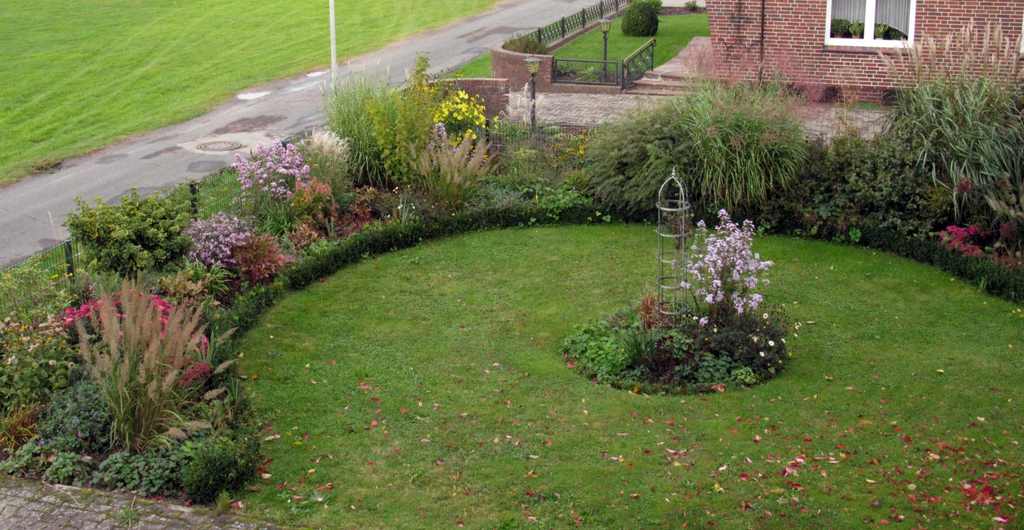 Bei mir stehen ca. 8 m zur Verfügung denke ich, aber ich habe den Vorteil, dass der Nachbar selbst in seinem Garten Fichten gepflanzt hat - in reichlicher Entfernung zur Grundstücksgrenze (Norden). Die stören überhaupt nicht und bilden einen phantastischen Hintergrund für meine Bepflanzung. Weißblühende Stauden müssten dort besonders wirken - da kann man mit Gräsern noch mehr machen, als ich bisher. Es muss auch noch einwachsen.