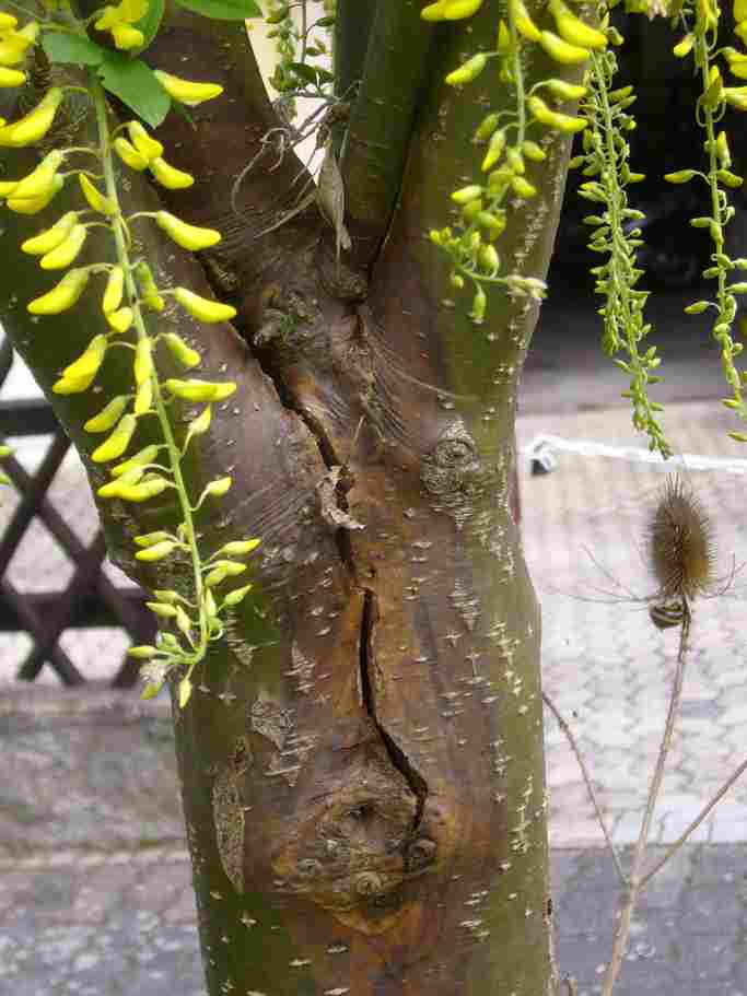 Und was ist mit meinem Goldregen los? Die Stelle ist strategisch lebensnotwendig, da kann ich sicherlich nichts rausschneiden oder so. Wird er überleben? Er blüht in diesem Jahr mal wieder überreich ??? :'(