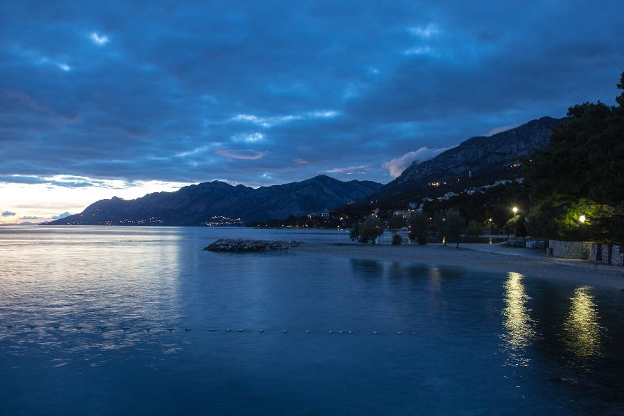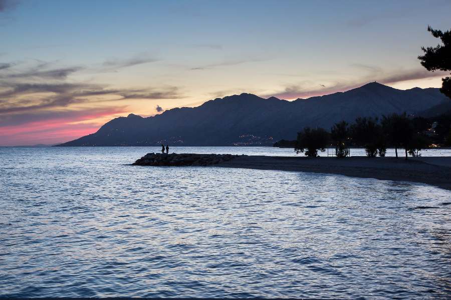 Der Tag geht in der Stadt Baska Voda zu Ende.
